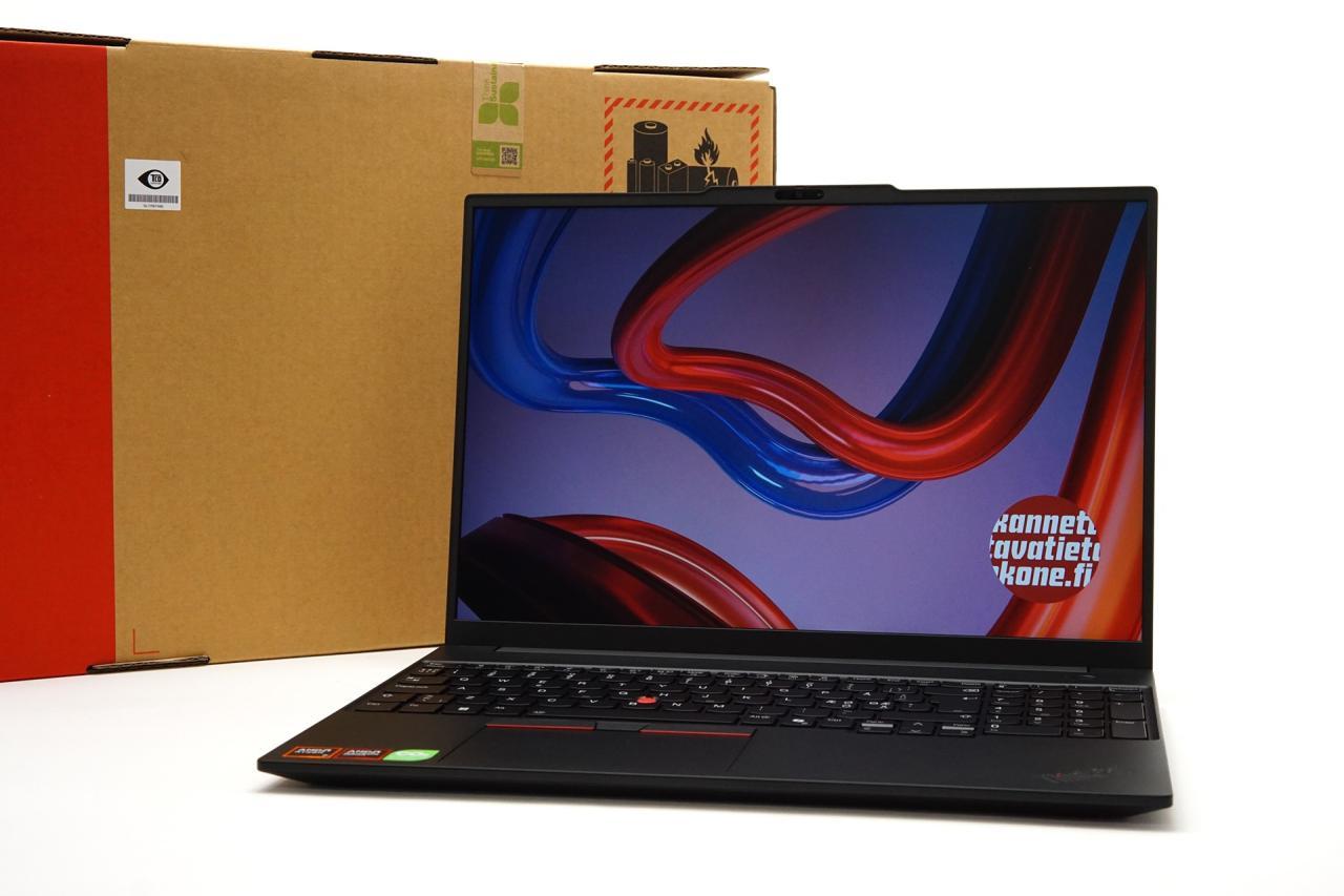 Lenovo ThinkPad E16 Gen 3 on isokokoisella 16" IPS-näytöllä ja AMD Ryzen -prosessorilla varustettu yrityskäyttöön valmis kannettava tietokone, joka sopii hyvin pieniin yrityksiin, kotitoimistoon tai liikkuvaan työhön.