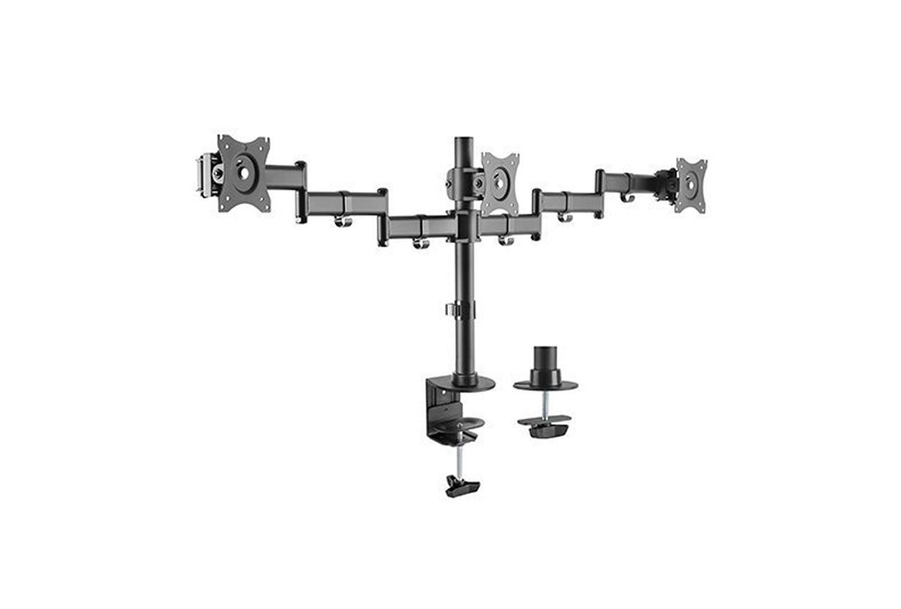 Yhä useampi käyttää kolmea monitoria samanaikaisesti joko töissä tai kotona. Pöytäjalan avulla voit asentaa kolme näyttöä kiinni pöytälevyyn helposti ja tilaa säästäen. Säädä korkeus, liikuta ja käännä monitoria kevyesti. Yksi näyttö asennetaan keskiöön josta haaraantuun kaksi vartta toiselle ja kolmannelle monitorille. Molemmissa varsissa on kaksi niveltä jotka tarjoavat paljon joustavuutta ja erinomaisen käyttöergonomian. Teline mahdollistaa monitorin kääntämisen hetkessä vaaka-asennosta pystyasentoon. Telineessä on kätevä kaapelinhallinta, jonka avulla luot siistin asennuksen.
